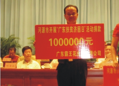 2011年6月30日上午九時(shí),河源市2011年“廣東扶貧濟(jì)困日”活動(dòng)動(dòng)員暨表彰大會(huì)在河源市會(huì)議中心隆重召開。自“廣東扶貧濟(jì)困日”啟動(dòng)以來我司高度重視此活動(dòng)積極響應(yīng)、主動(dòng)捐款,在2010年扶貧濟(jì)困日中我司捐款50萬元,在會(huì)上我司“積極回饋社會(huì),奉獻(xiàn)愛心”的精神受到表彰,并獲得了“萬綠杯”銀獎(jiǎng)。 今年我司朱日楊董事長(zhǎng)代表公司慷慨解囊,在活動(dòng)現(xiàn)場(chǎng)再次捐出了100萬元。