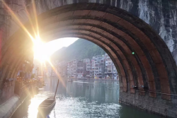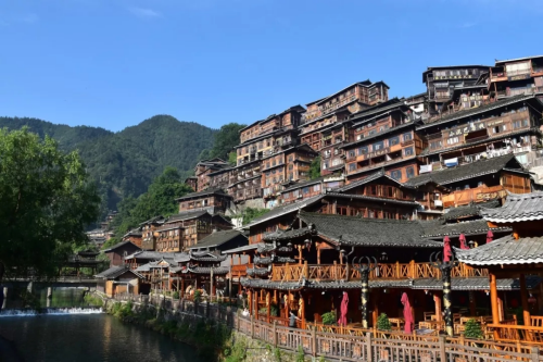 向“黔”進,必進鎮遠。舞陽河呈S型穿城而過,將鎮遠古城一分為二,府衛城各有故事,各有精彩。自古是軍事及商業要塞的鎮遠,與很多古鎮不同,臨街的樓房雖是新式樓房,但仍然保留著古典“徽派”的建筑風格。順著老街的小巷觀賞古鎮的古老建筑,一定要見識下傳說中的“歪門斜道”。這里的民居大門的朝向都是歪的,不與街道巷道平行,而且巷道也是七扭八拐的。這特別的建筑風格據說是來自風水師的告誡,目的是為了藏風聚氣。也似乎讓鎮遠古鎮更有歷史韻味,讓人嘆為觀止。